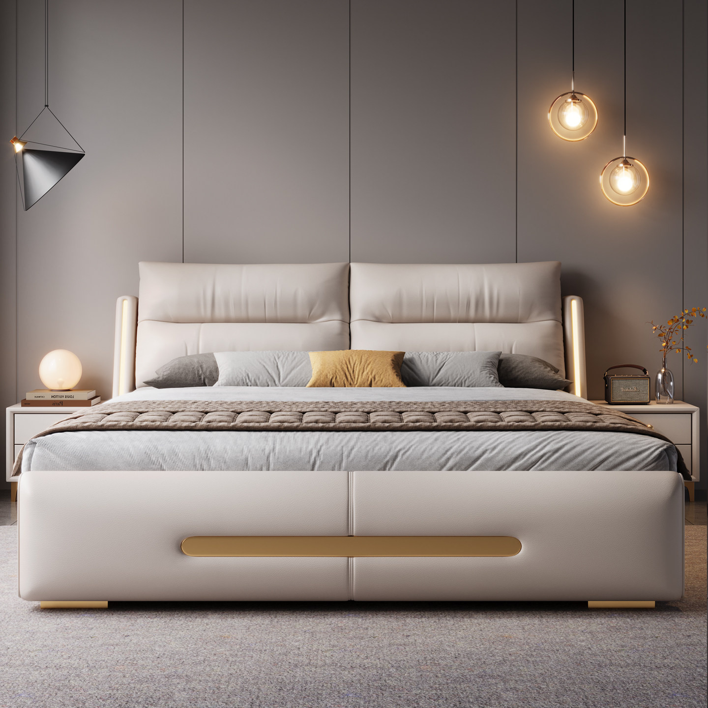 2025新款意式极简真皮床现代简约主卧大床2米×2.2米多功能双人床
