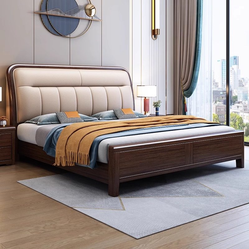 2×2.2米黑胡桃木实木床宋氏美学1.8双人主卧大床新中式1.5软包床
