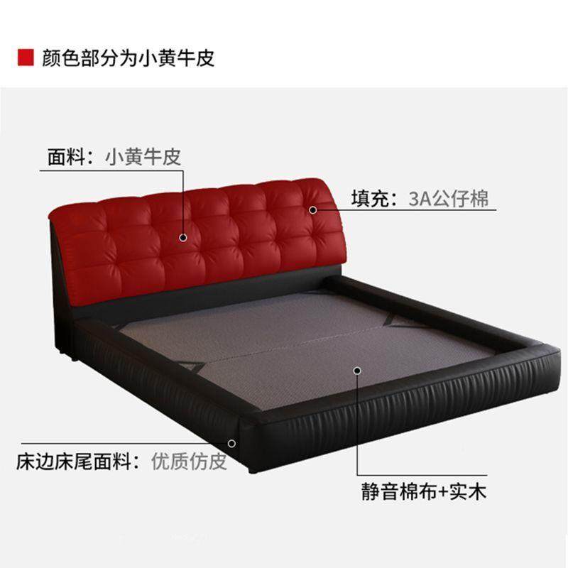 意式轻奢真皮床2米x2.2米主卧双人大床现代简约1.8米储物皮艺婚床