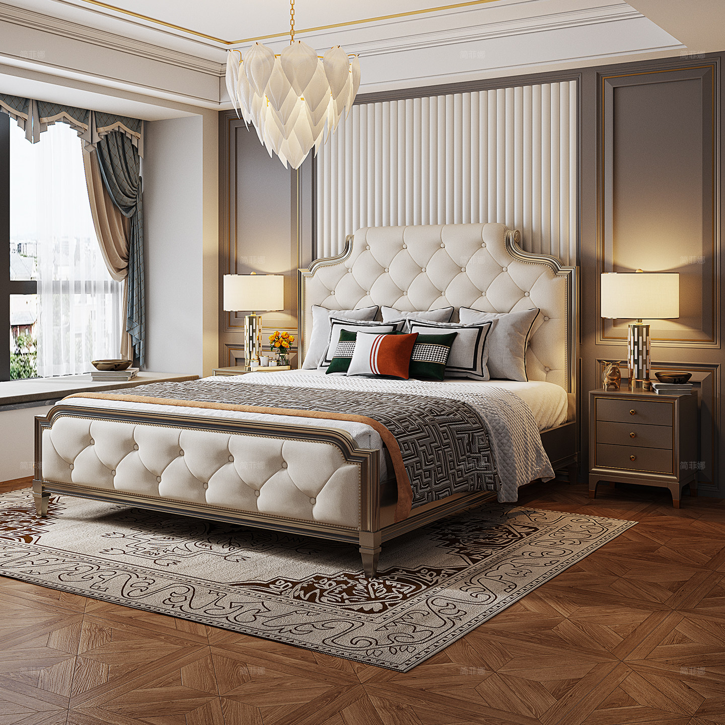 简菲娜梵星床美式轻奢真皮床主卧2×2.2米大床奶油风双人床婚床