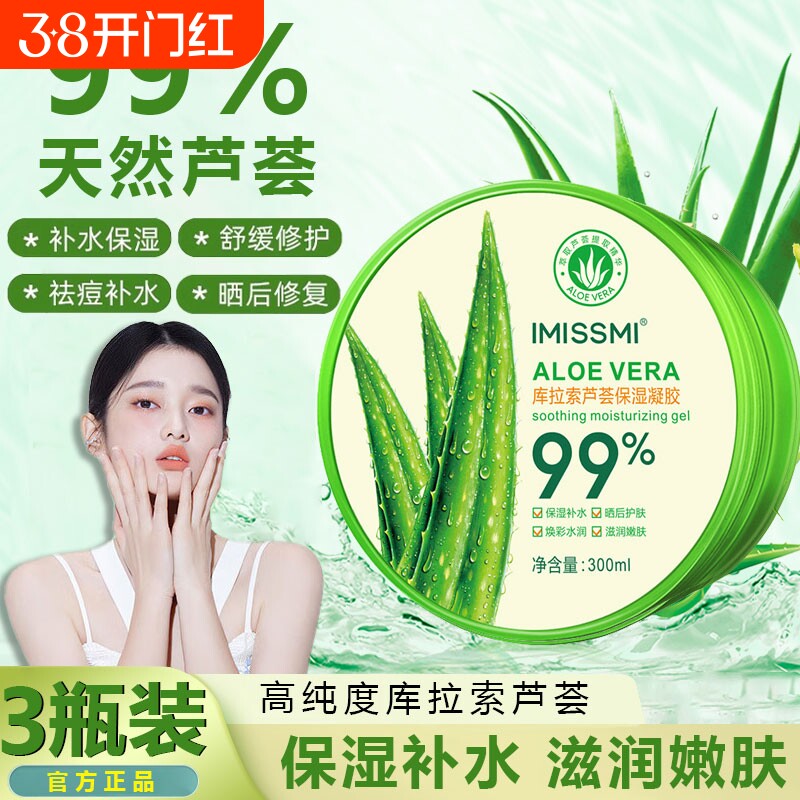 库拉索芦荟胶正品补水保湿舒缓晒后修护男女士专用面霜凝胶护手霜
