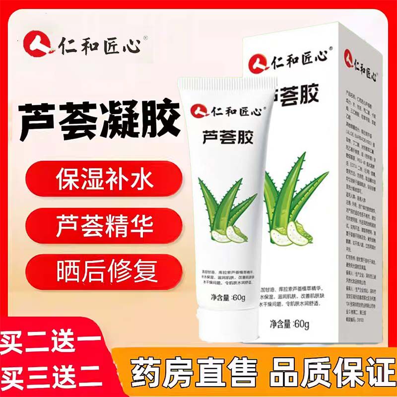 仁和匠心芦荟胶正品补水保湿晒后修复痘痘润肤清爽霜药房直售cc