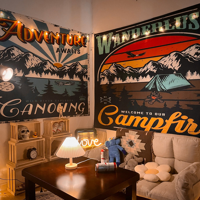 来图定制挂布直播间大尺寸墙布床头装饰氛围感露营户外广告背景布