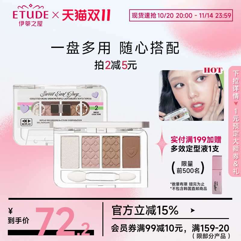 ETUDE伊蒂之屋/爱丽小屋JellyPang系列四色眼影盘细闪新手百搭