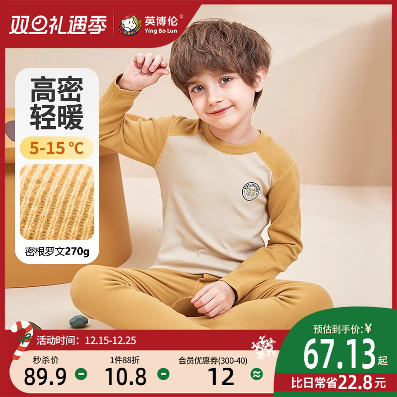 英博伦儿童内衣套装纯棉男童秋衣秋裤全棉小男孩睡衣中大童棉毛衫
