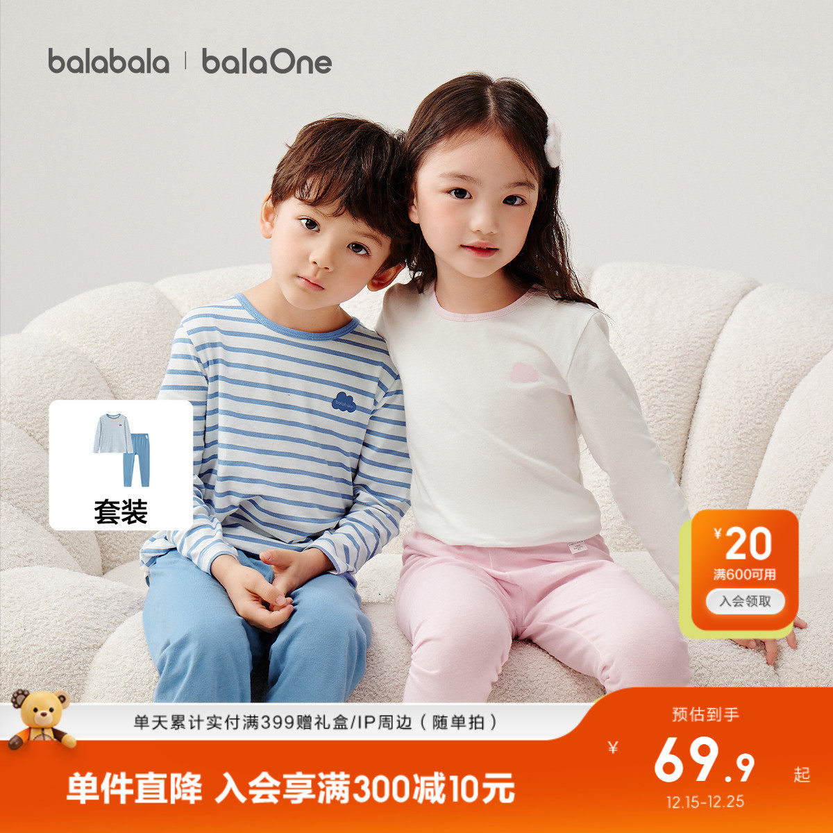 巴拉巴拉儿童内衣套装春秋新款男童秋衣秋裤小童女童打底睡衣纯棉