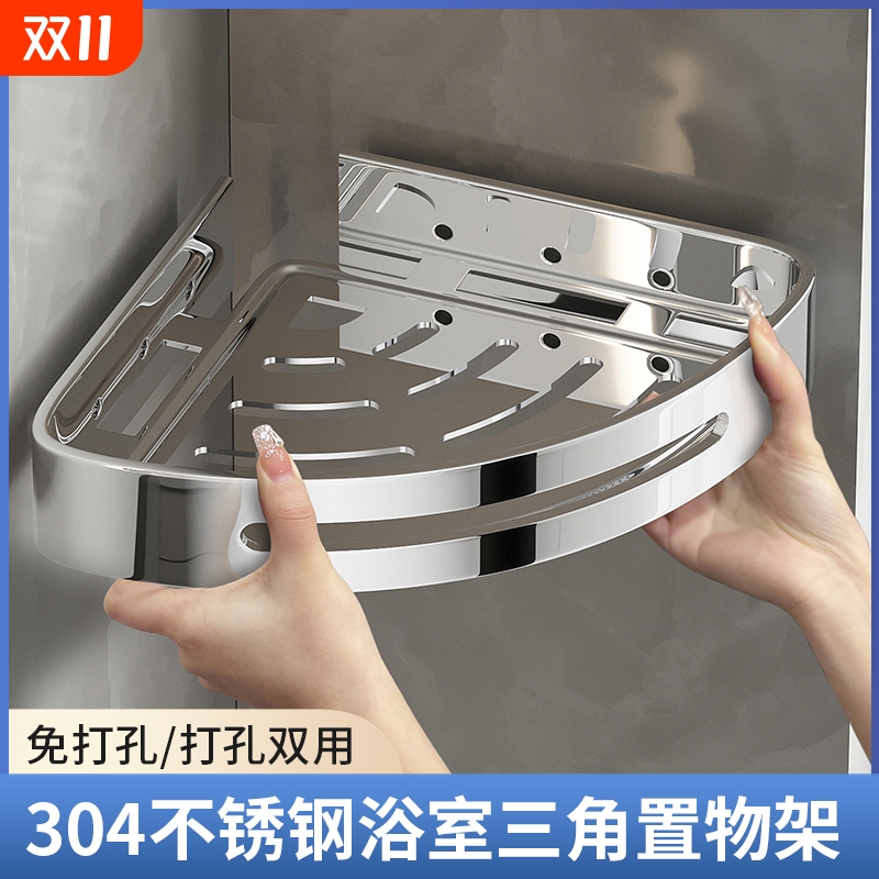 304不锈钢浴室置物架免打孔卫生间三角架壁挂淋浴房厕所角篮收纳
