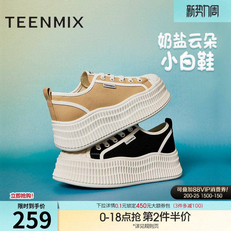 天美意厚底增高小白鞋帆布鞋板鞋女运动休闲鞋新款BJ321CM4