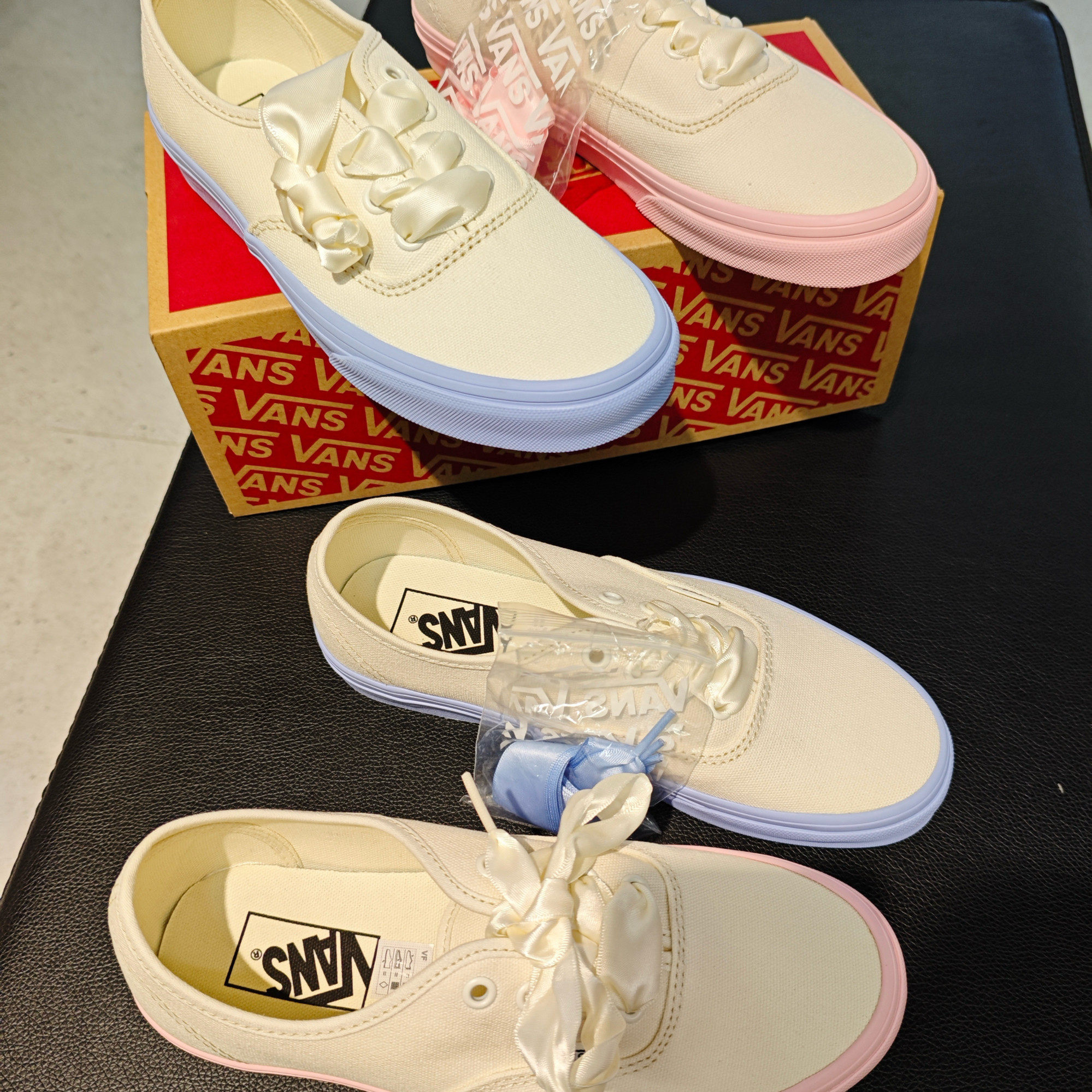 范斯vans authentic粉蓝丝绸夏季小白鞋帆布鞋低帮VN0009PVCY7