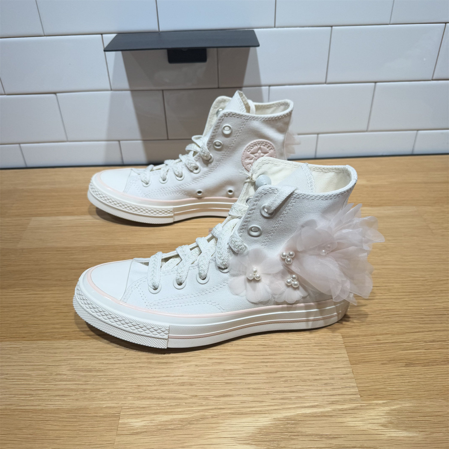匡威新款1970s三星标高帮白色丝绸蝴蝶结休闲小白鞋帆布鞋A07078C