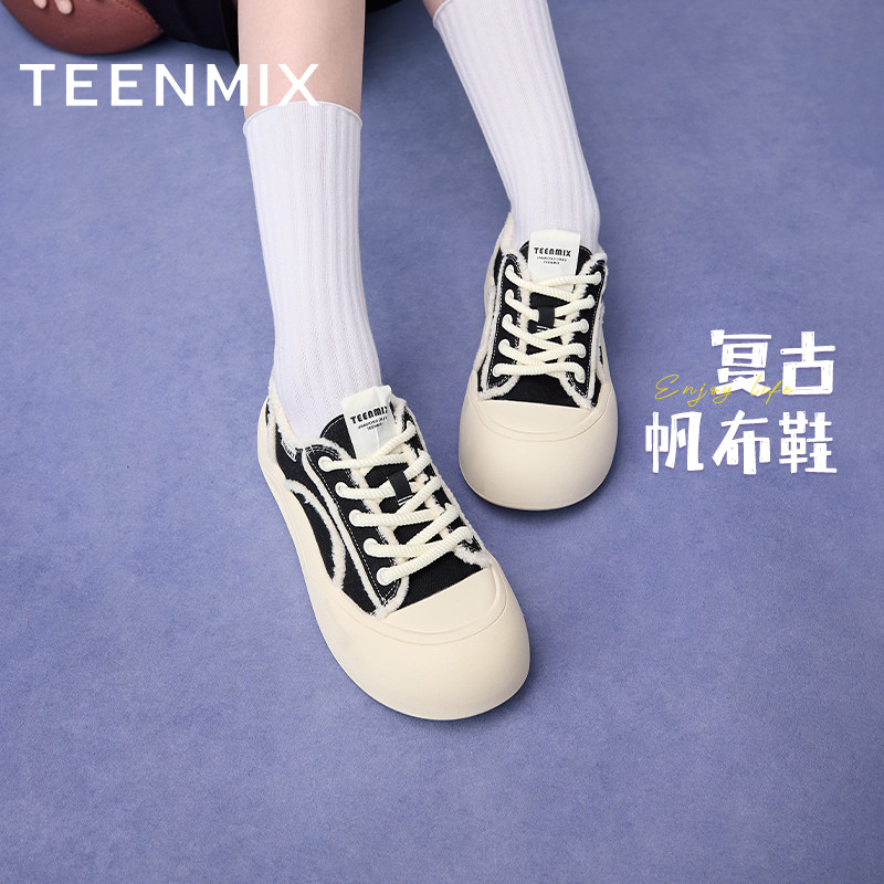 人本官方店厚底小白鞋帆布鞋女复古2026年夏季学生百搭透气休闲鞋