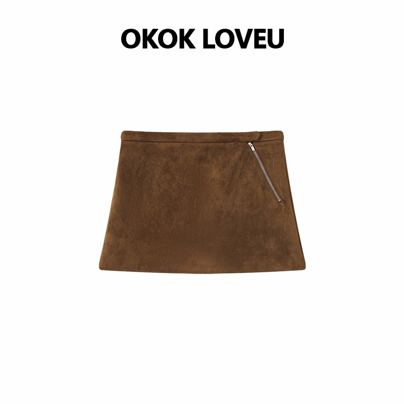 OKOK LOVEU "老钱麂皮裙" 高定质感麂皮极简半身裙
