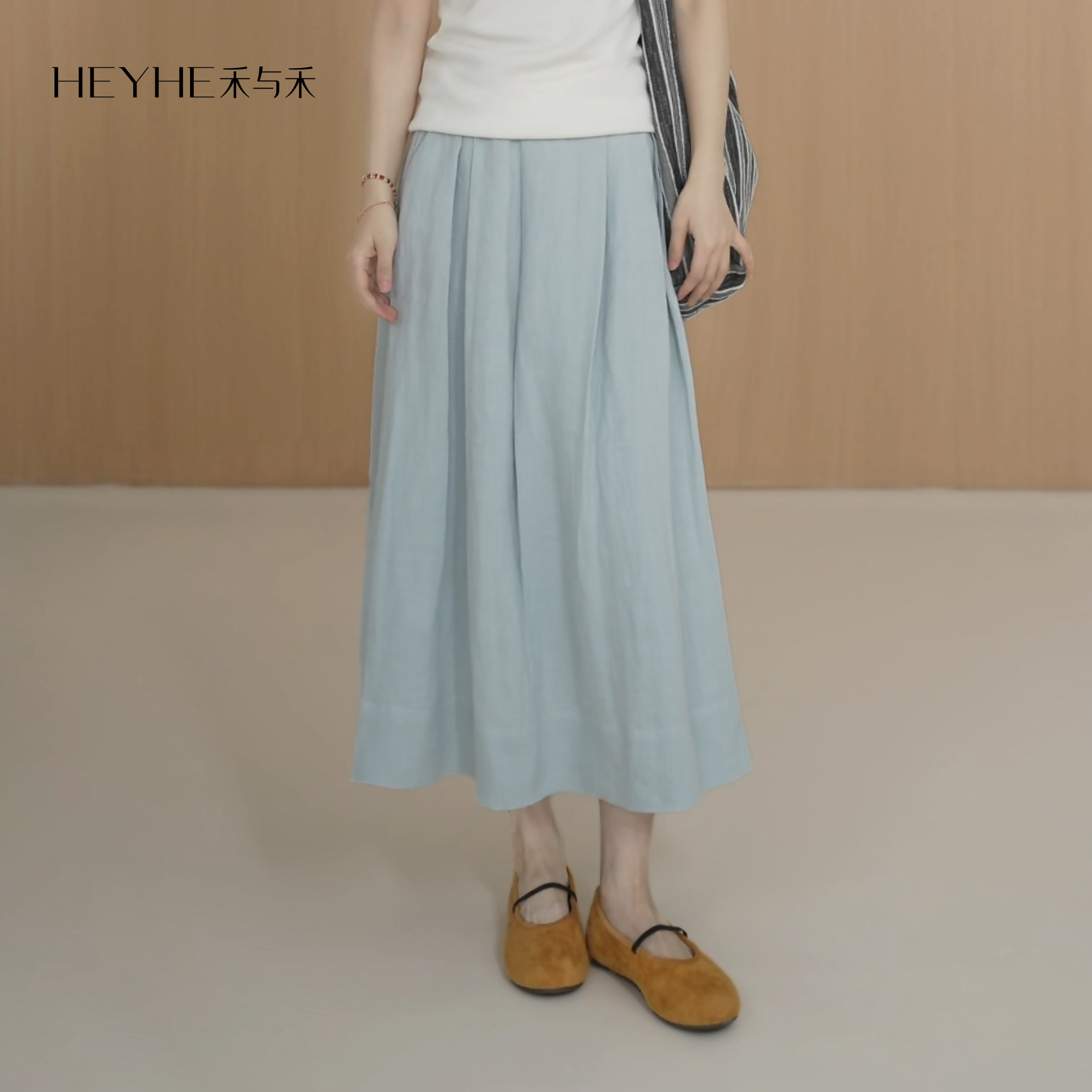 小禾【蓝天白云】100汉麻垂感捏褶极简休闲高腰显瘦轻薄半身裙女