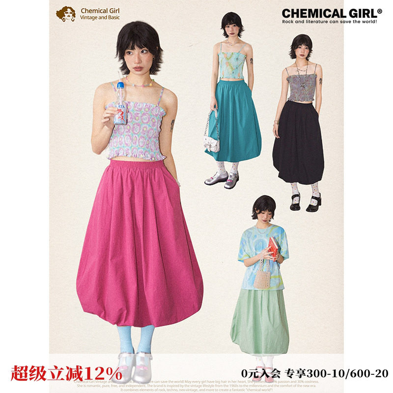 化学少女「色彩派对」夏季松紧腰花苞裙半身裙女高腰显瘦长款裙子