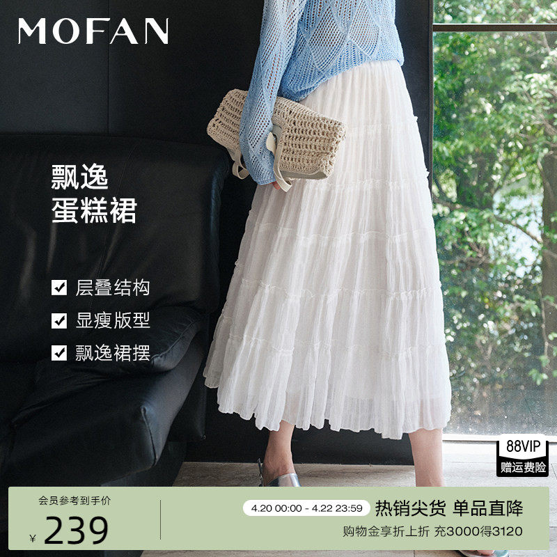 甜美淑女白色A字仙女裙MOFAN摩凡2026春夏新款松紧高腰显瘦半身裙