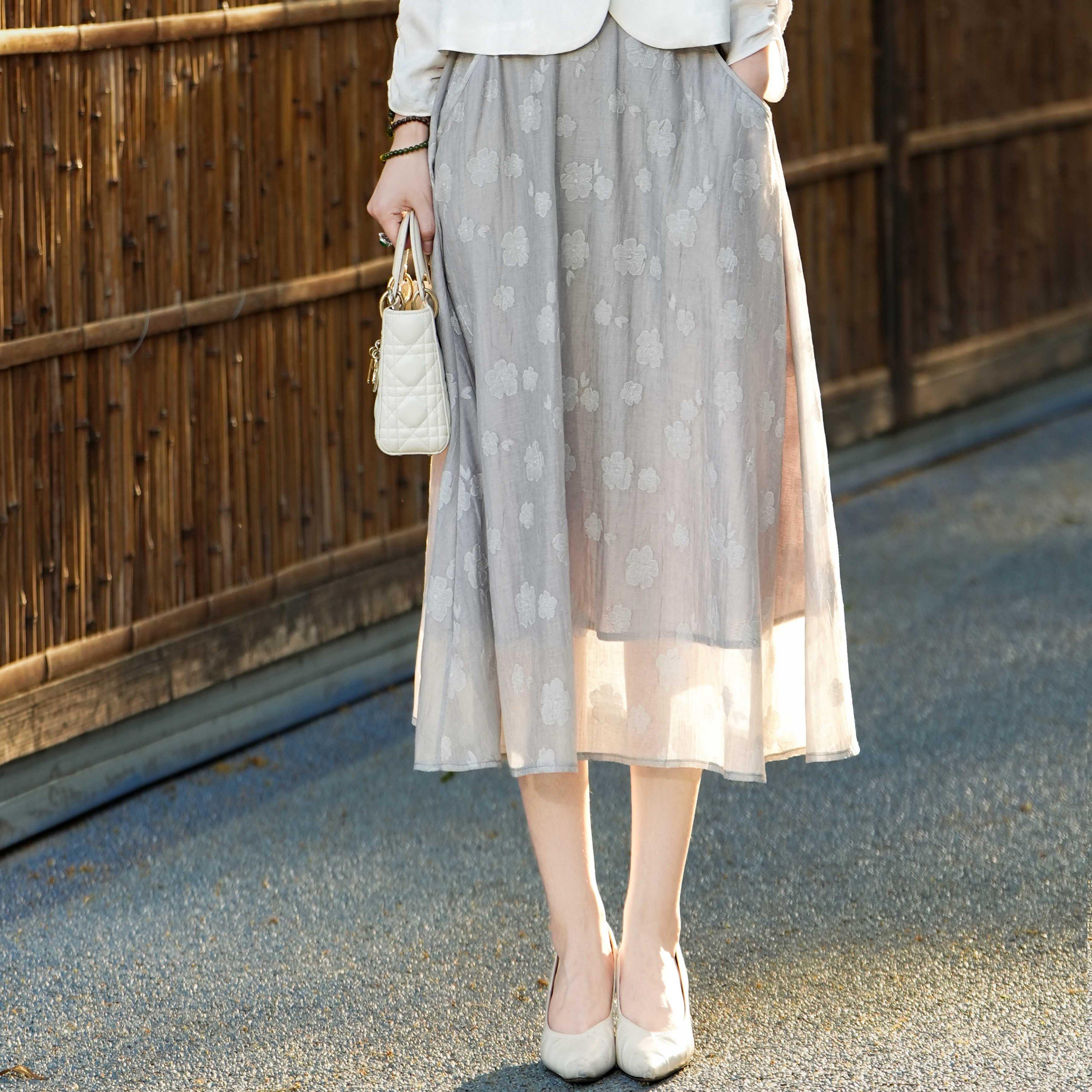 西子/【春日花漾】轻盈烧花高腰松紧腰气质百搭半身裙女/BQBH1501
