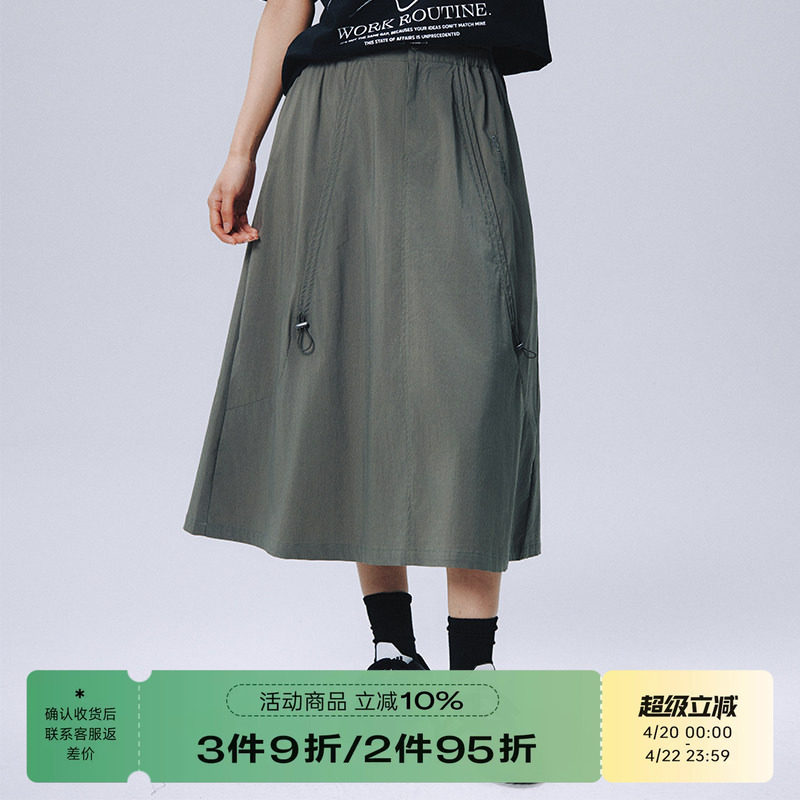 RAPPEYE伞兵抽绳裙休闲复古大摆高腰显瘦百搭a字设计感工装半身裙