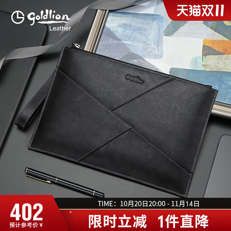 金利来手包男真皮手拿包头层牛皮商务拼接信封包简约时尚零钱夹包