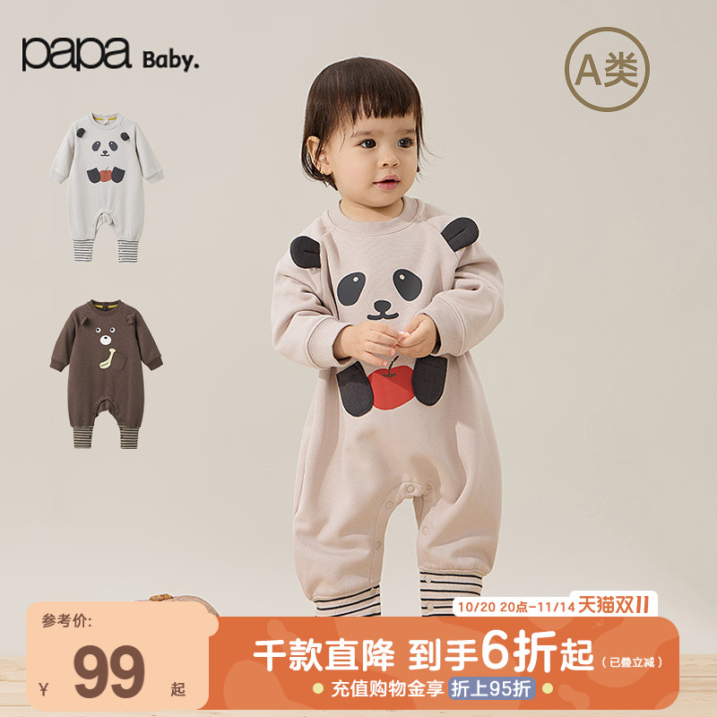 【新品】papa爬爬宝宝连体衣冬季婴儿连体服男女可爱造型动物爬服