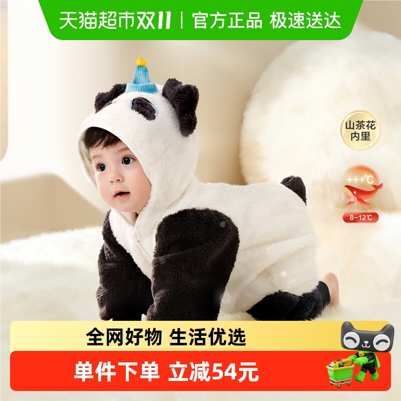 冬天婴儿连体衣熊猫哈衣秋冬季卡通动物加厚爬服宝宝冬装外出抱衣