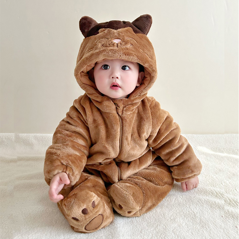 婴儿童加绒小熊宝宝连体衣保暖超萌加厚动物爬外出服睡衣棉服秋冬