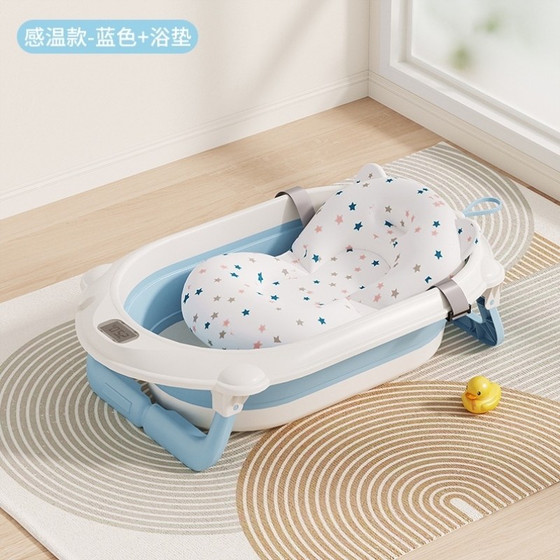 婴儿洗澡盆宝宝浴盆幼儿坐躺折叠大号沐浴桶家用感温新生儿童用品