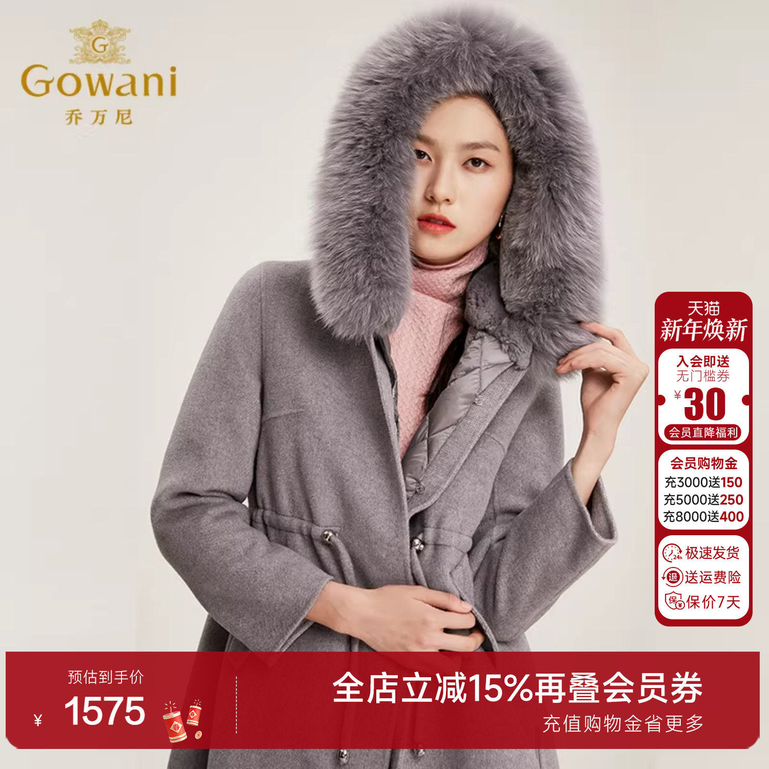 乔万尼毛呢外套商场可脱卸羽绒内胆保暖大毛领呢子大衣时尚流行女