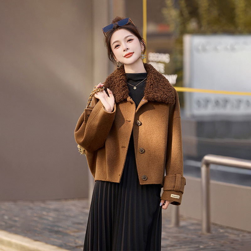 双面羊毛大衣女短款2025年秋冬新款高级感宽松气质大毛领呢子外套