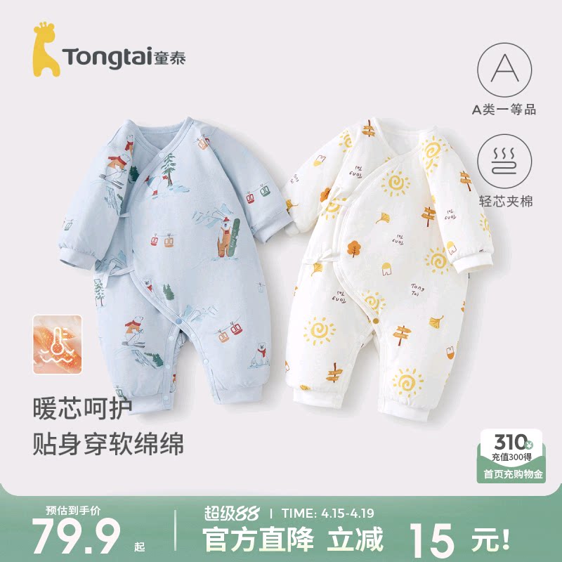 童泰新生婴儿衣服秋冬季初生宝宝连体衣纯棉夹棉加厚哈衣爬服冬装