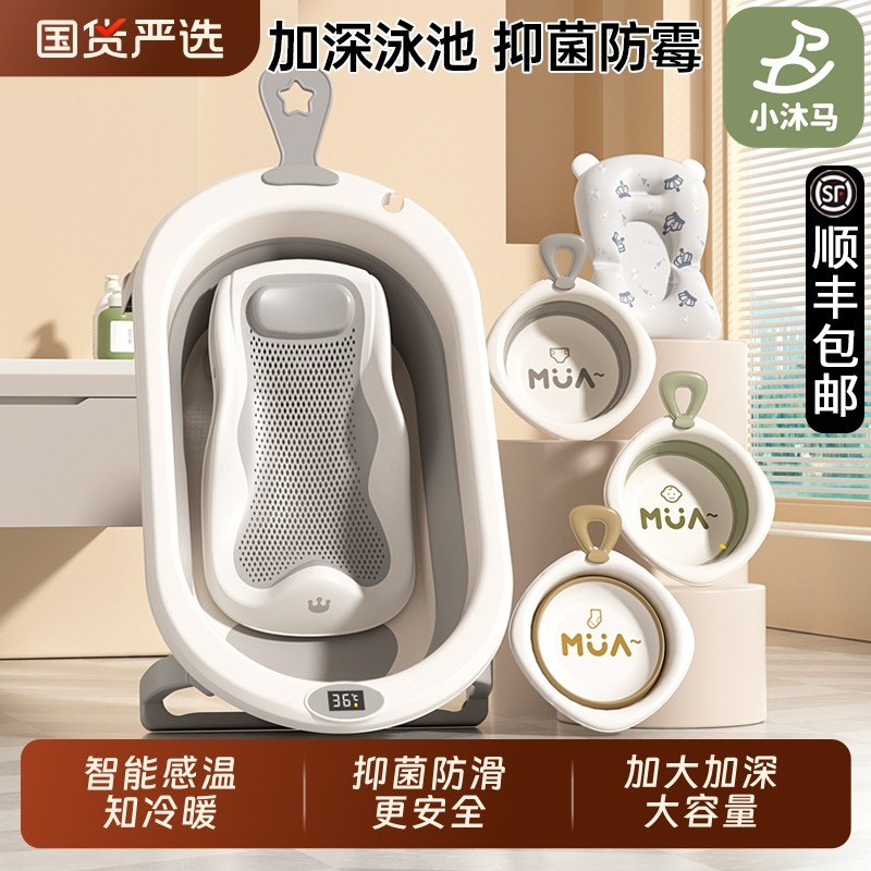 小沐马婴儿浴盆幼儿宝宝洗澡盆大号浴桶家用新生儿童用品折叠国货