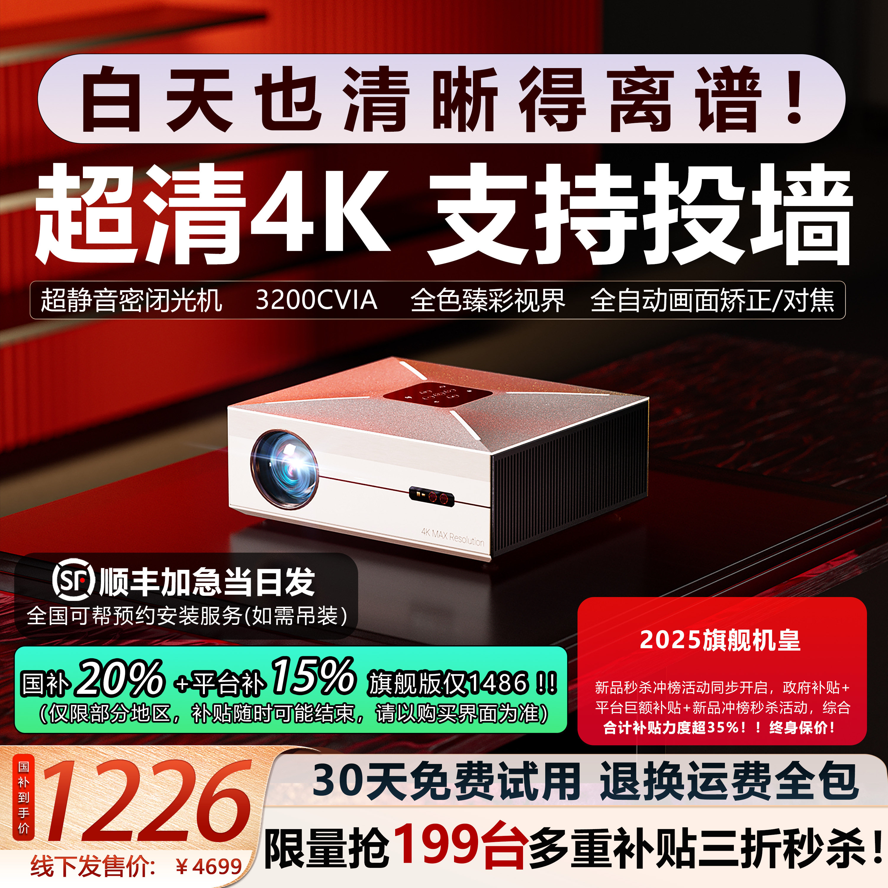 政俯补贴2026新款激光白天强光直投超高清8K解码投影仪家用办公会议酒店卧室户外家庭影院手机投屏投墙投影机