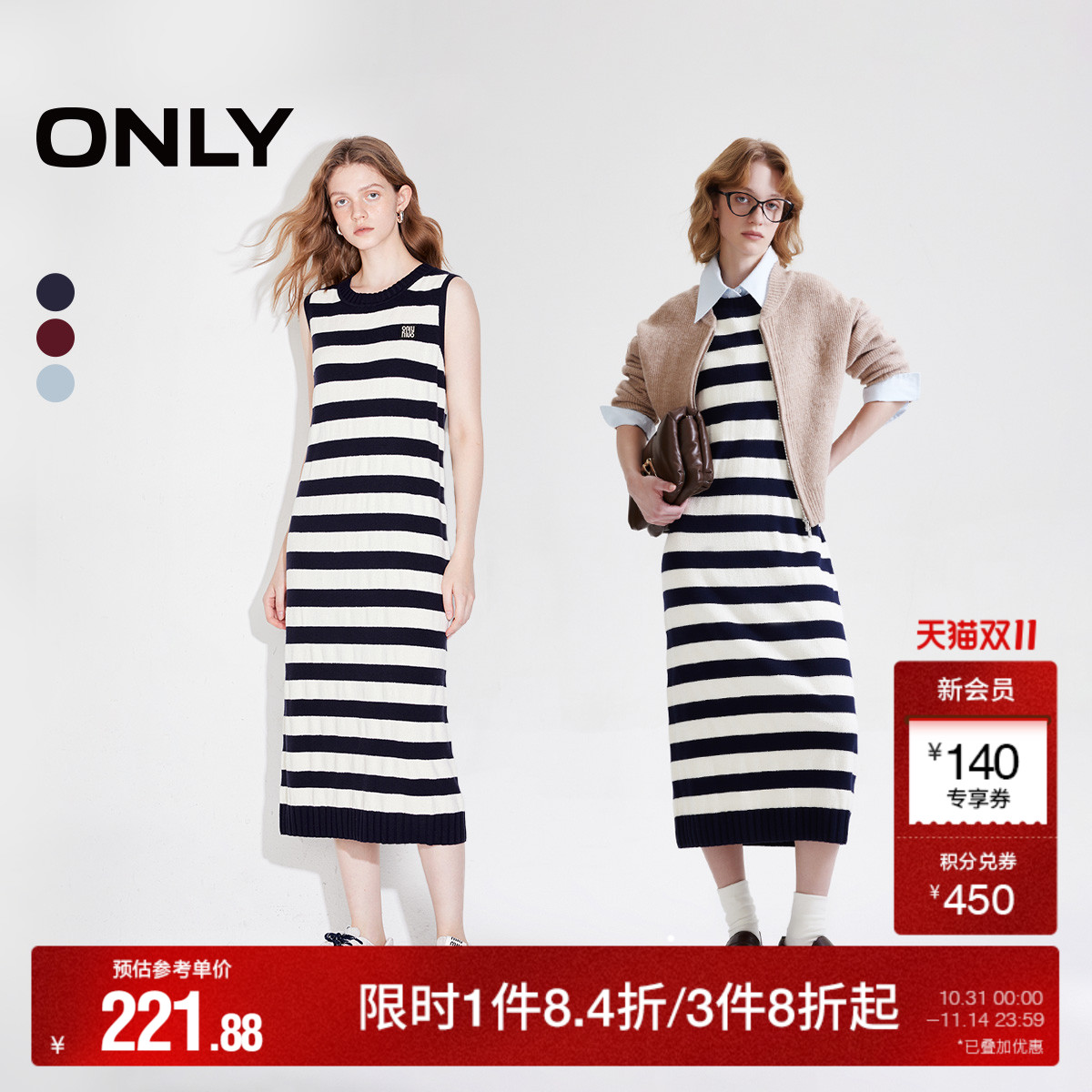 绫致ONLY2025冬季新款休闲风百搭弹力条纹长裙针织连衣裙女