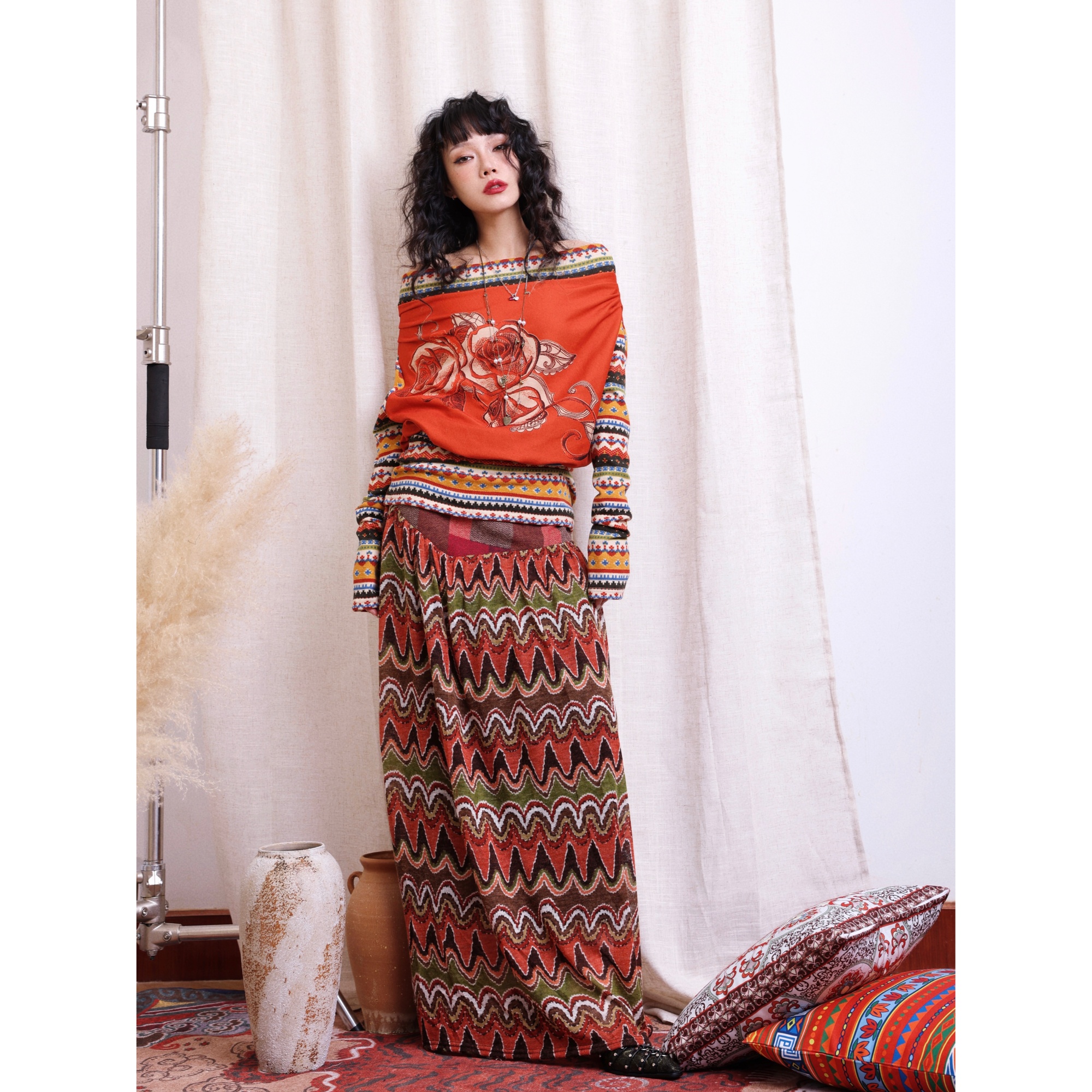 - 大红连衣裙秋