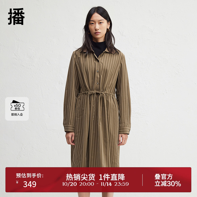 【播奥莱】播商场同款中长款收腰连衣裙女冬新条纹长裙BDR9LD4225