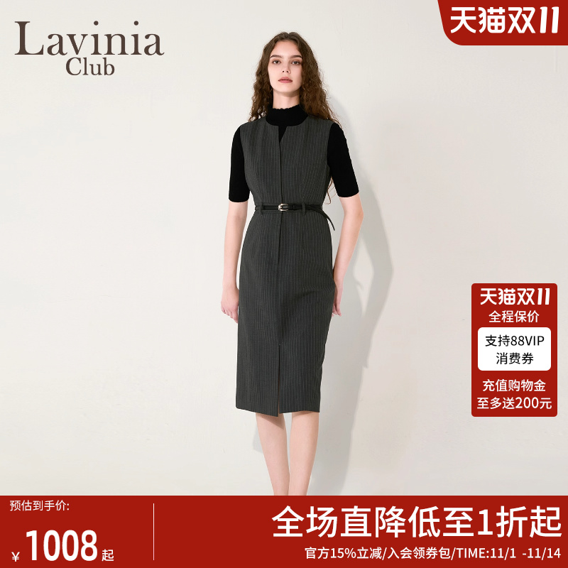 Lavinia轻奢无袖连衣裙女2025秋新款约简气质通勤条纹长裙B55L02