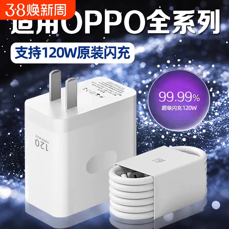 充电器适用OPPO120W官方原装正品快充USB插头findX8/X7pro手机120W闪充套装充电头超级闪氮化镓标准数据