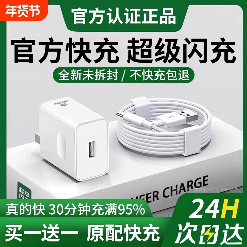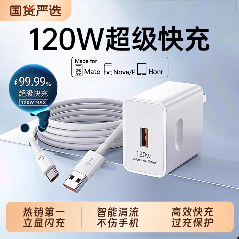 充电器3C认证120W手机快充充电头超级原装正品6A数据线适用荣耀华为OPPO安卓VIVOmate50套装闪充大功率氮化镓
