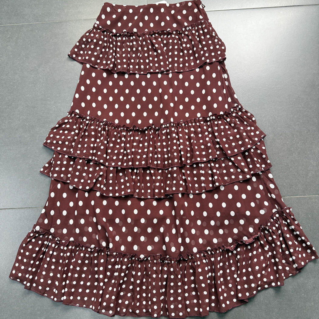 外贸单 四季 法式棕色波点雪纺半裙 轻盈灵动荷叶边半身裙长裙