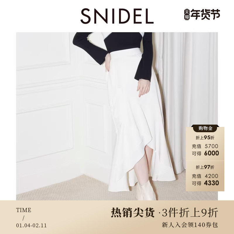 SNIDEL2025秋冬新品优雅百搭高腰不规则荷叶边半身裙SWFS255034