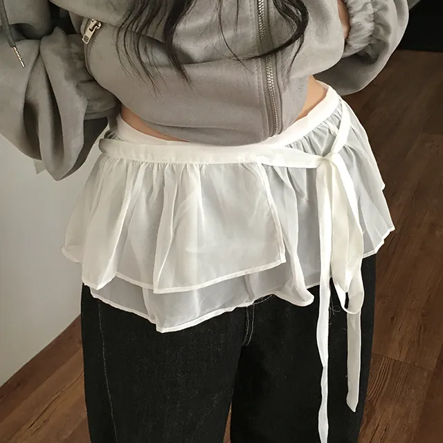 春天记事簿 双丝带荷叶边半身裙 芭蕾风叠穿百搭系带mini短裙