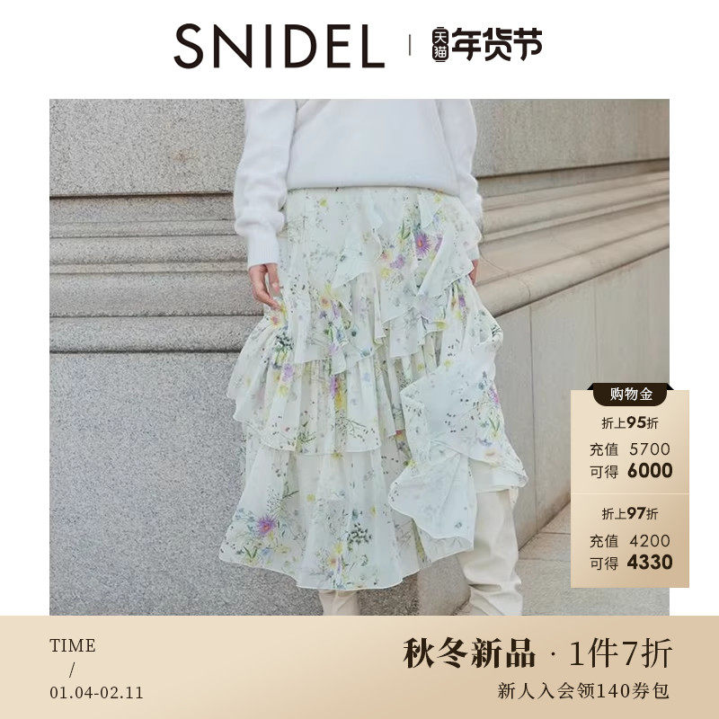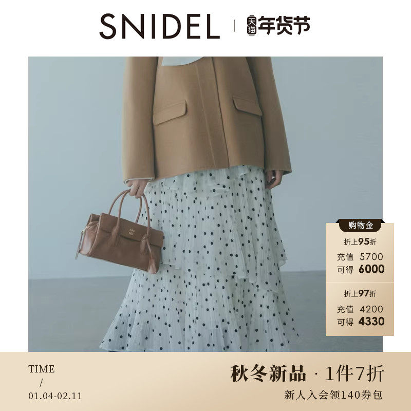 SNIDEL2025秋冬新品时尚百搭高腰百褶荷叶边蛋糕半身裙SWFS255048