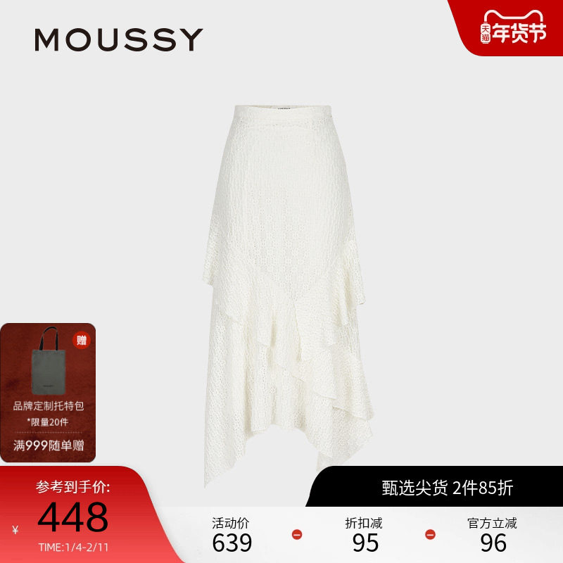 moussy 2025秋季新品田法式园风不规则荷叶边半身裙028IAZ31-1012