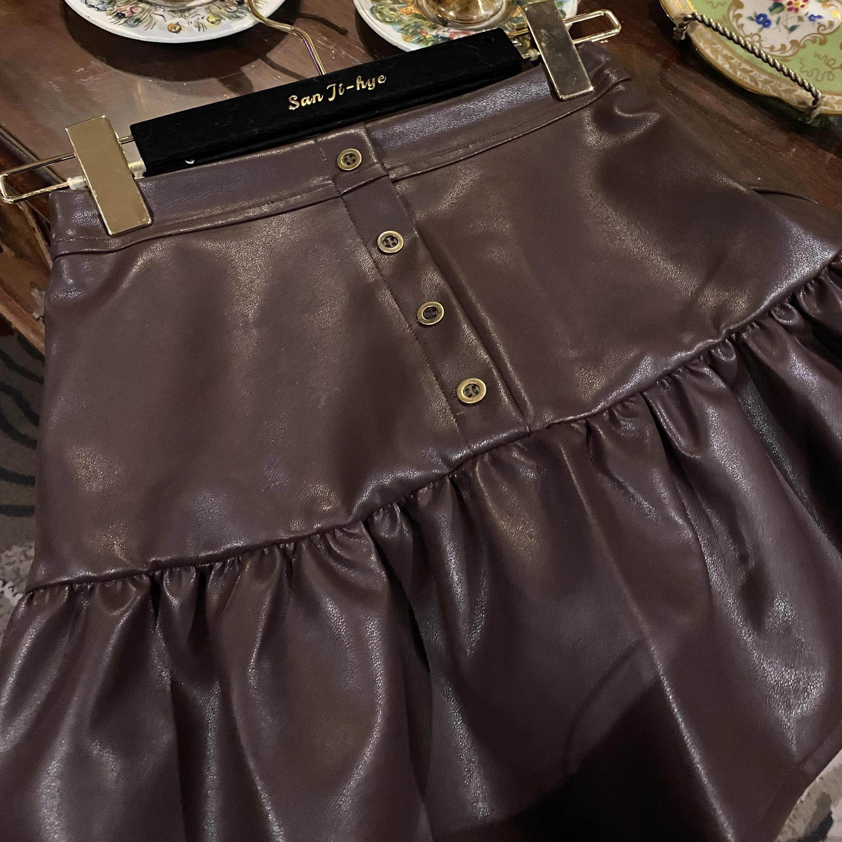 孙智惠zs「午后香氛」秋冬新款优雅层次感高腰荷叶边半身裙皮裙
