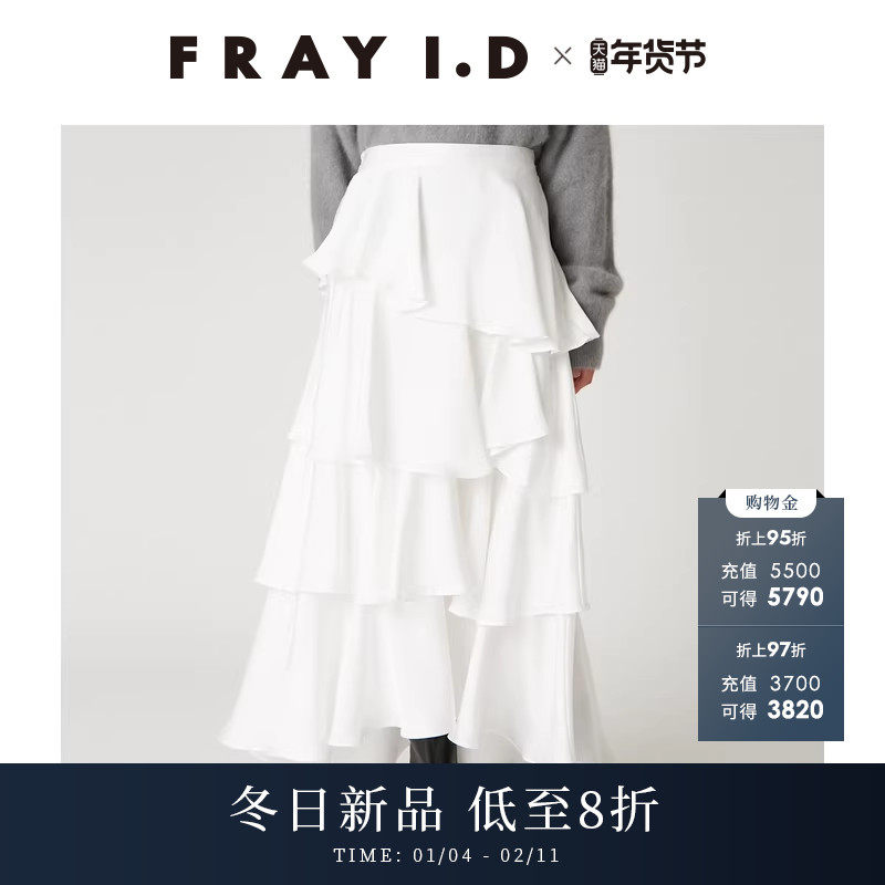 FRAY I.D2025秋冬新品优雅缎面高腰不规则荷叶边半身裙FWFS255056