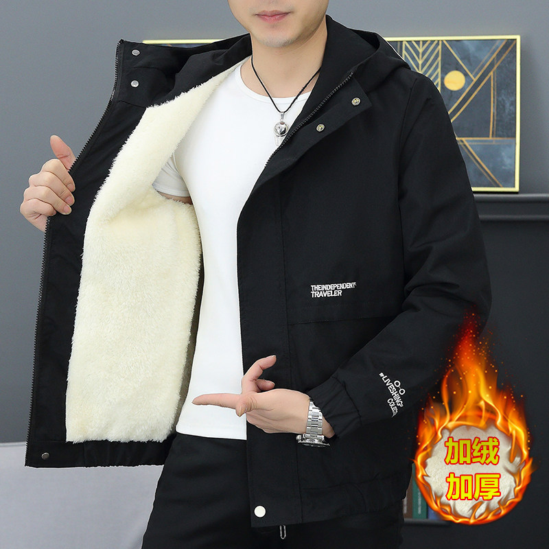 2025年新款秋冬加绒加厚外套韩版修身保暖夹克青年男士帅气棉衣服