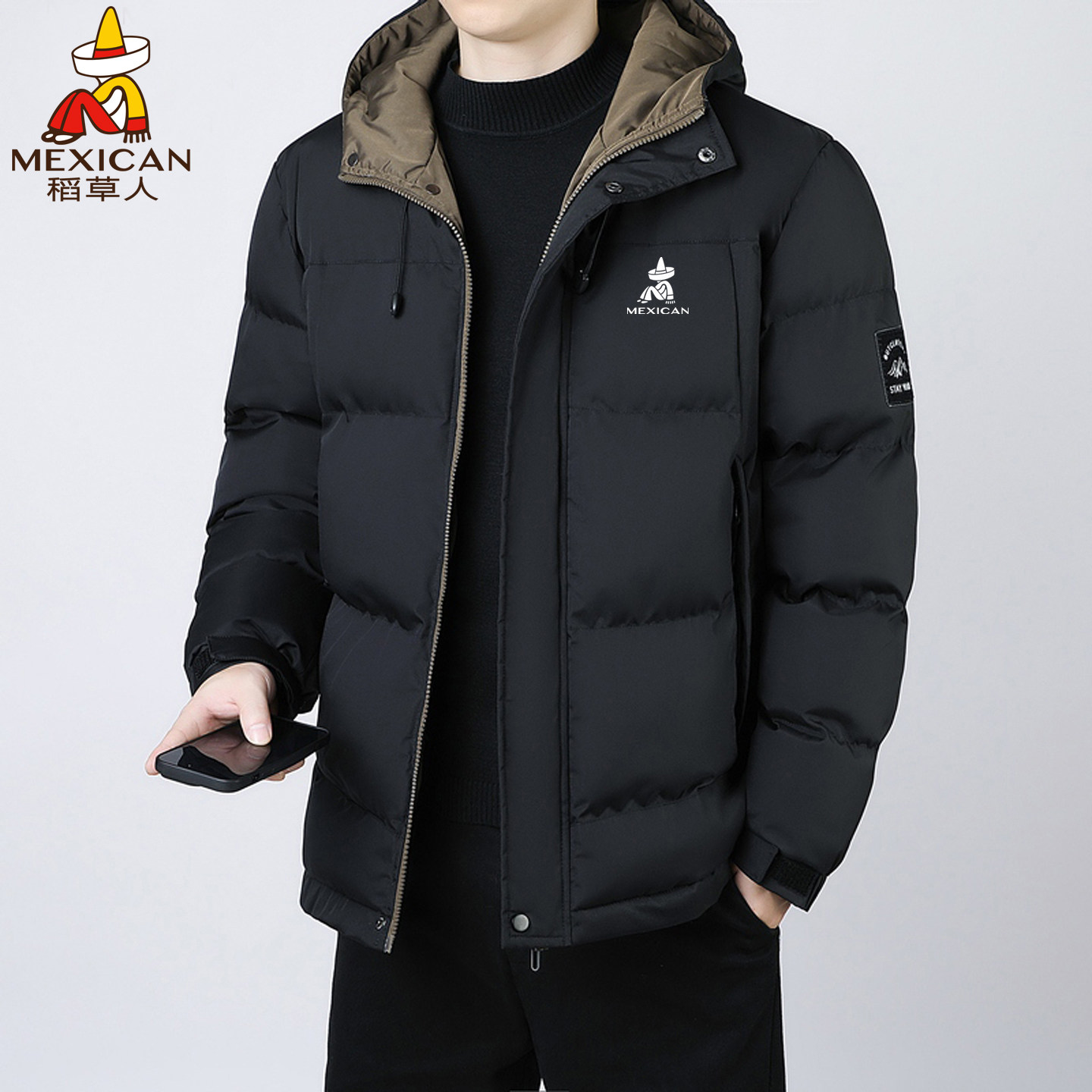 稻草人冬季棉衣男士潮流连帽中青年休闲运动加厚羽绒棉服保暖棉袄