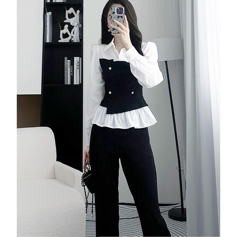 2025新款韩版穿搭喇叭裤两件套女2025春季新款时尚高级感衬衫套装
