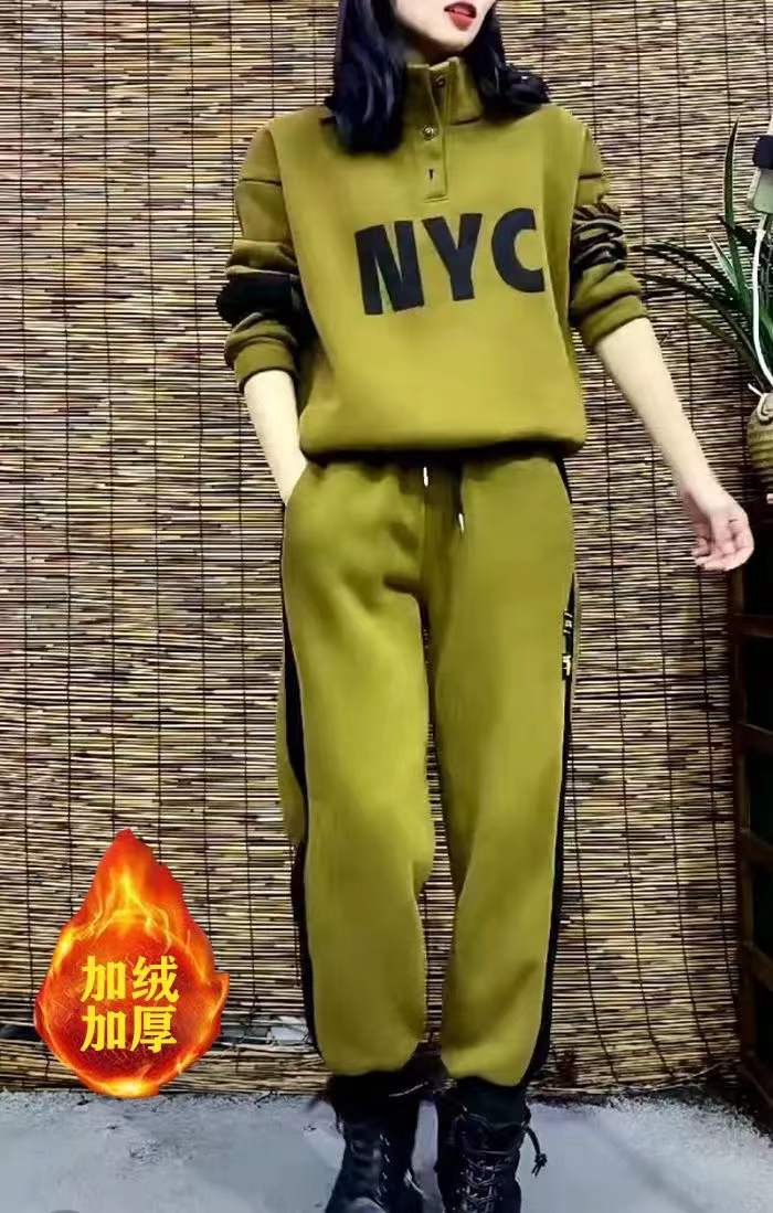加绒加厚网红爆款时尚女2024春季新款洋气韩版运动卫衣两件套装
