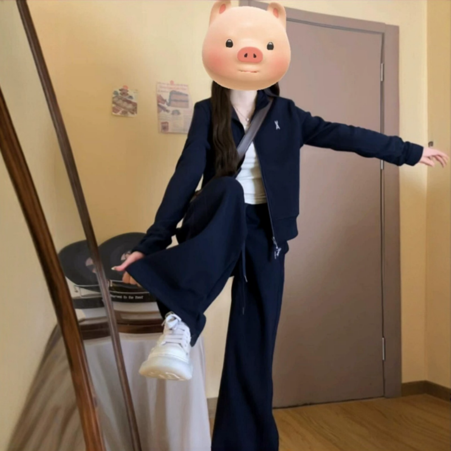韩版时尚慵懒风运动套装女春季修身显瘦休闲卫衣直筒阔腿裤两件套