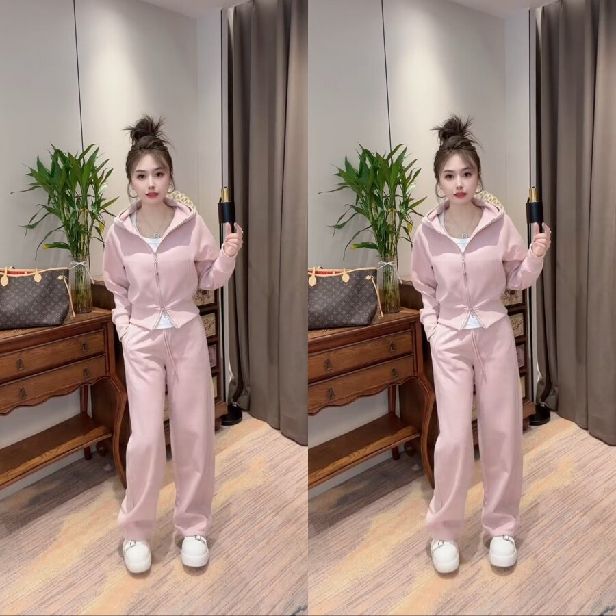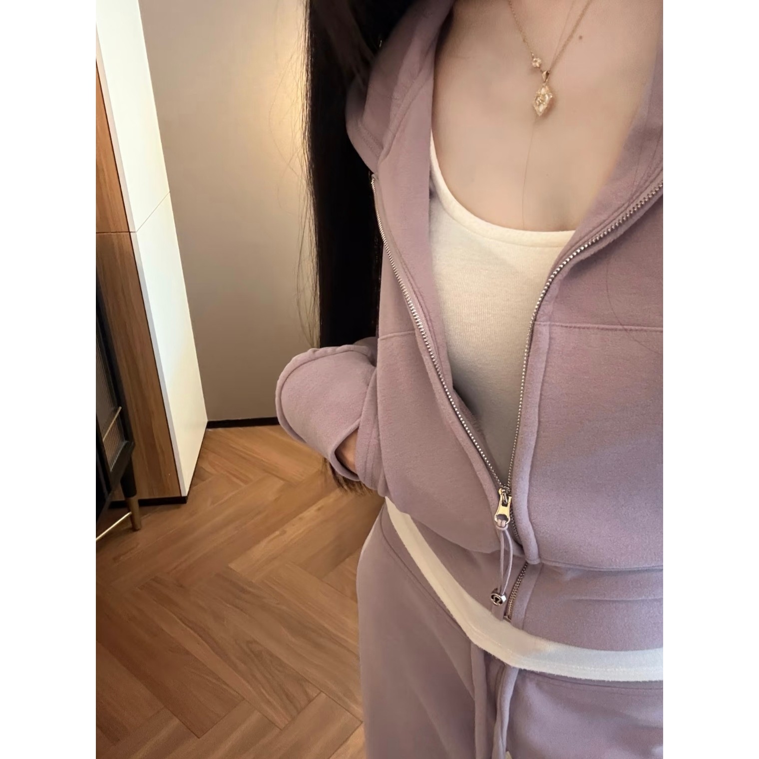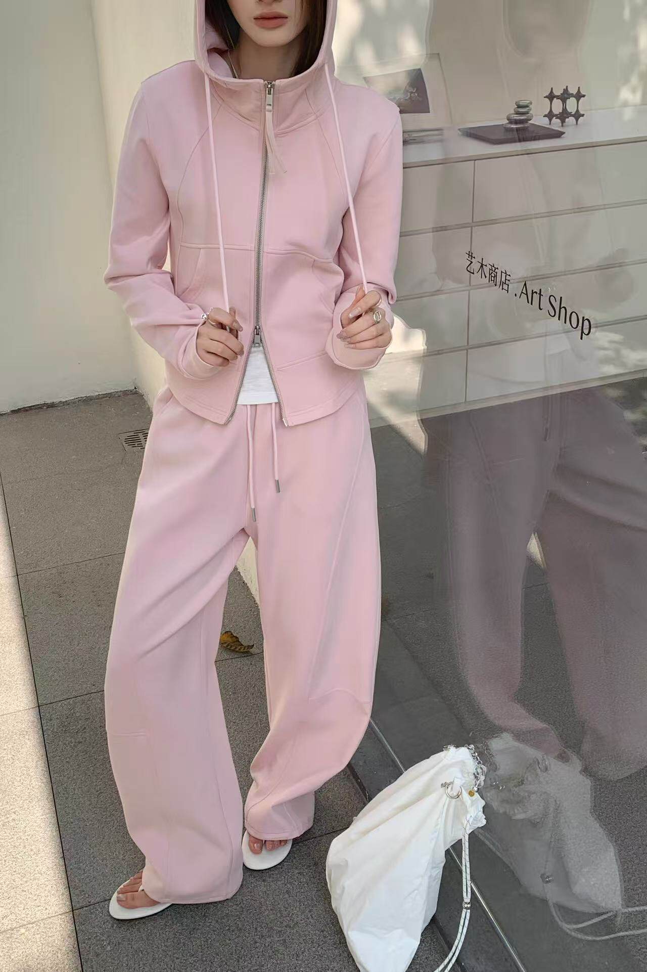 休闲运动套装女2026春季NANHAN楠涵韩版时髦连帽卫衣阔腿裤两件套